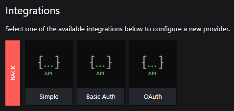 - Under Integrations click on Web API and choose either Simple, Basic Auth or OAuth depending on the API you are using.