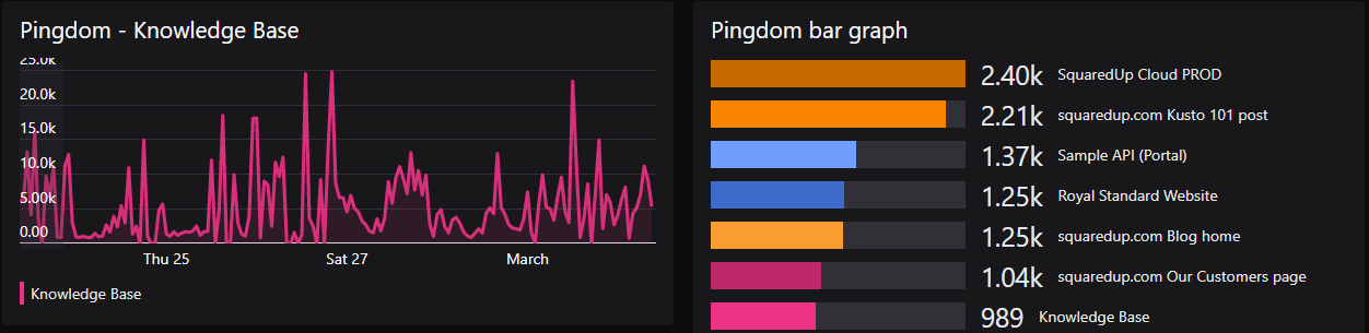 Line Graphs, Sparklines, Bar Graphs and Reports (available in Performance tiles) support graph color matching.