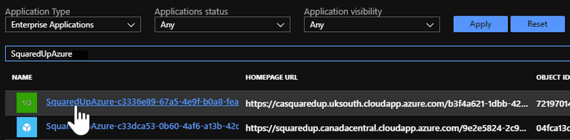 SquaredUpAzureand select the SquaredUpAzure enterprise application mentioned in the Need admin approval message.