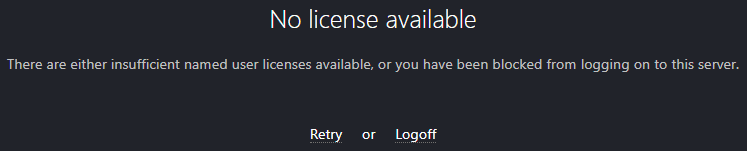 No license available. There are either insufficient named user licenses available, or you have been blocked from logging on to this server.