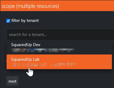 By default results are shown across all tenants. In SquaredUp DS 4.7 and above a user who has access to multiple tenants will see a filter by tenant option.