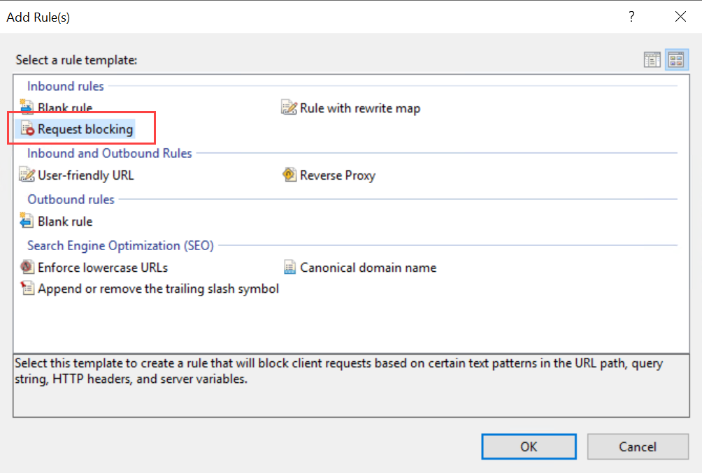 You can now see the rule in the URL rewrite module. Connections made via HTTP 1.0 without a Host header will now be rejected by the server.